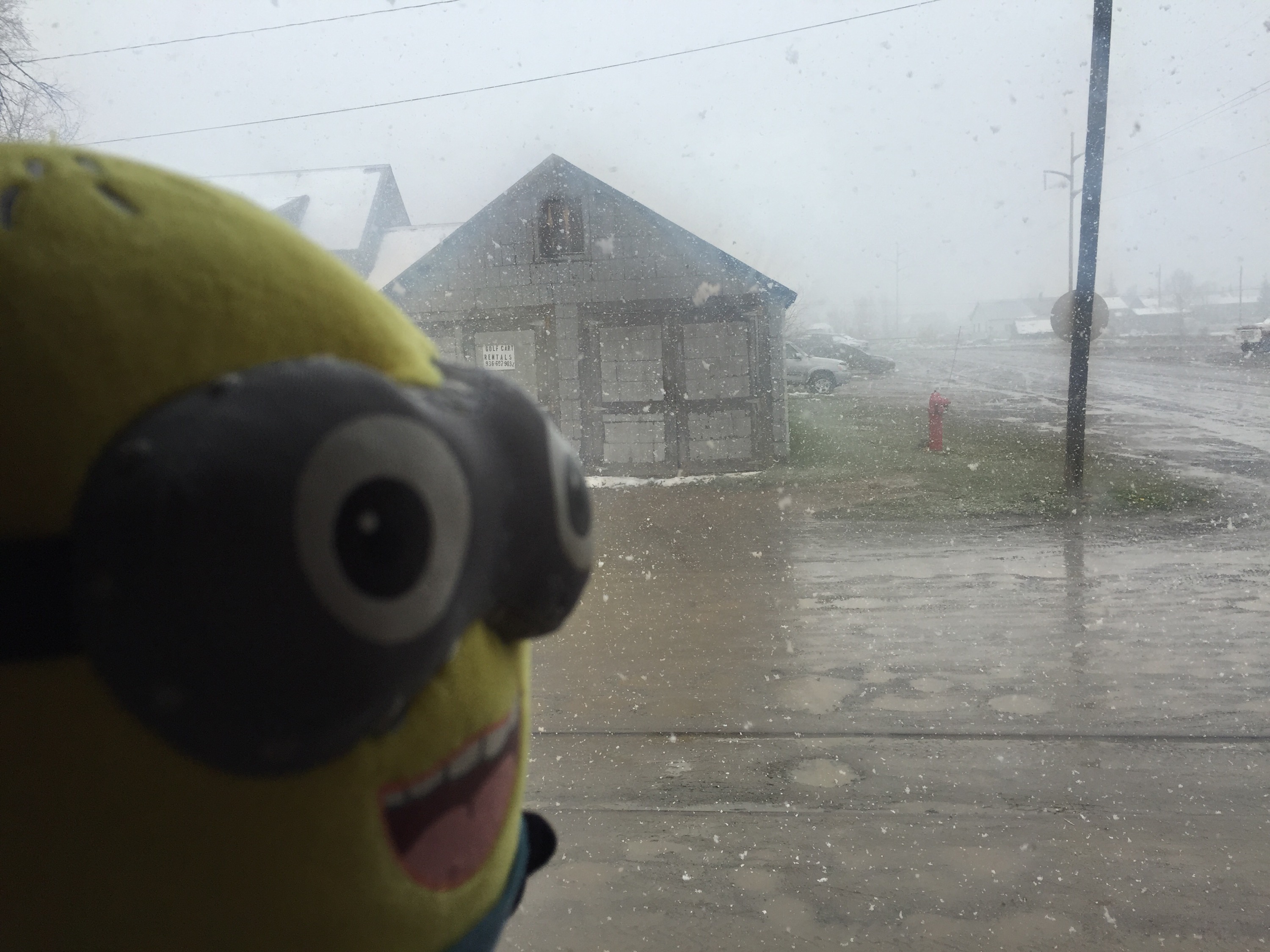 It’s snowy here and we only packed our summer Dungarees.