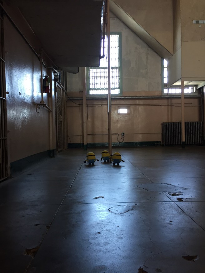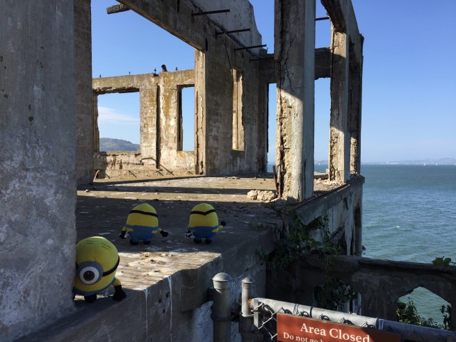 Three mischievous minions have been locked up in the maximum security Alcatraz prison.