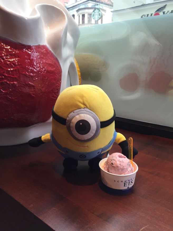 Outside the Rathuis. Stuart was hunting for a horse drawn beer cart but couldn’t find one. It’s very busy in Munich because the Oktoberfest starts tomorrow; but Stuart will be home before then.