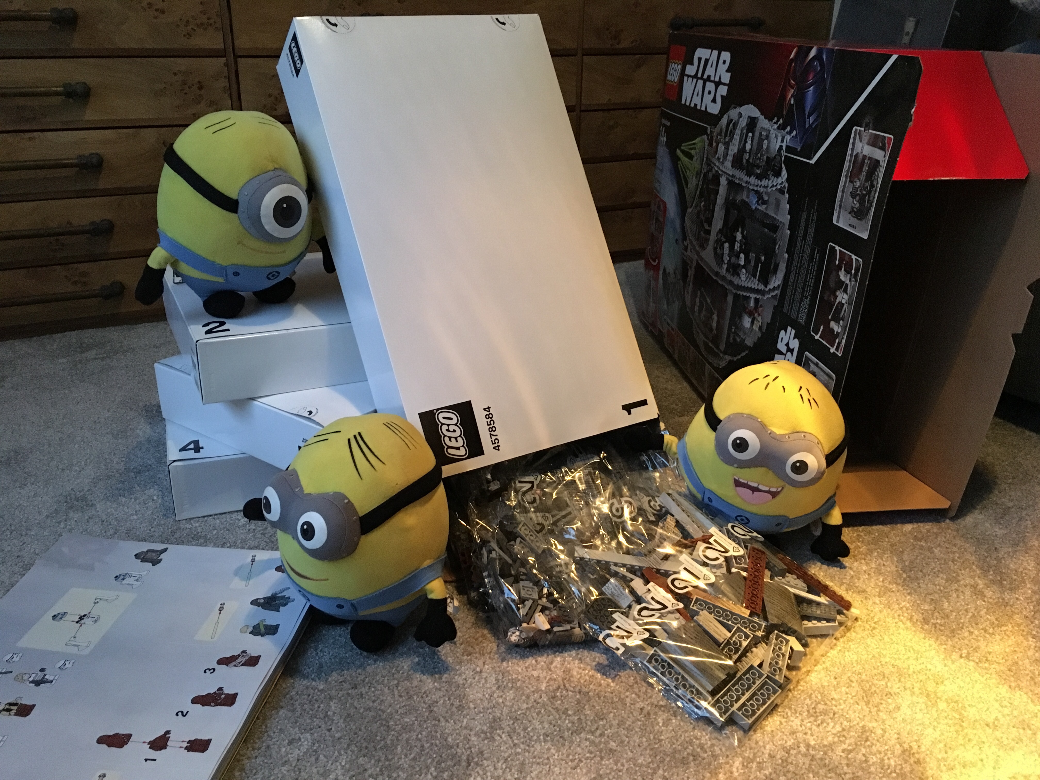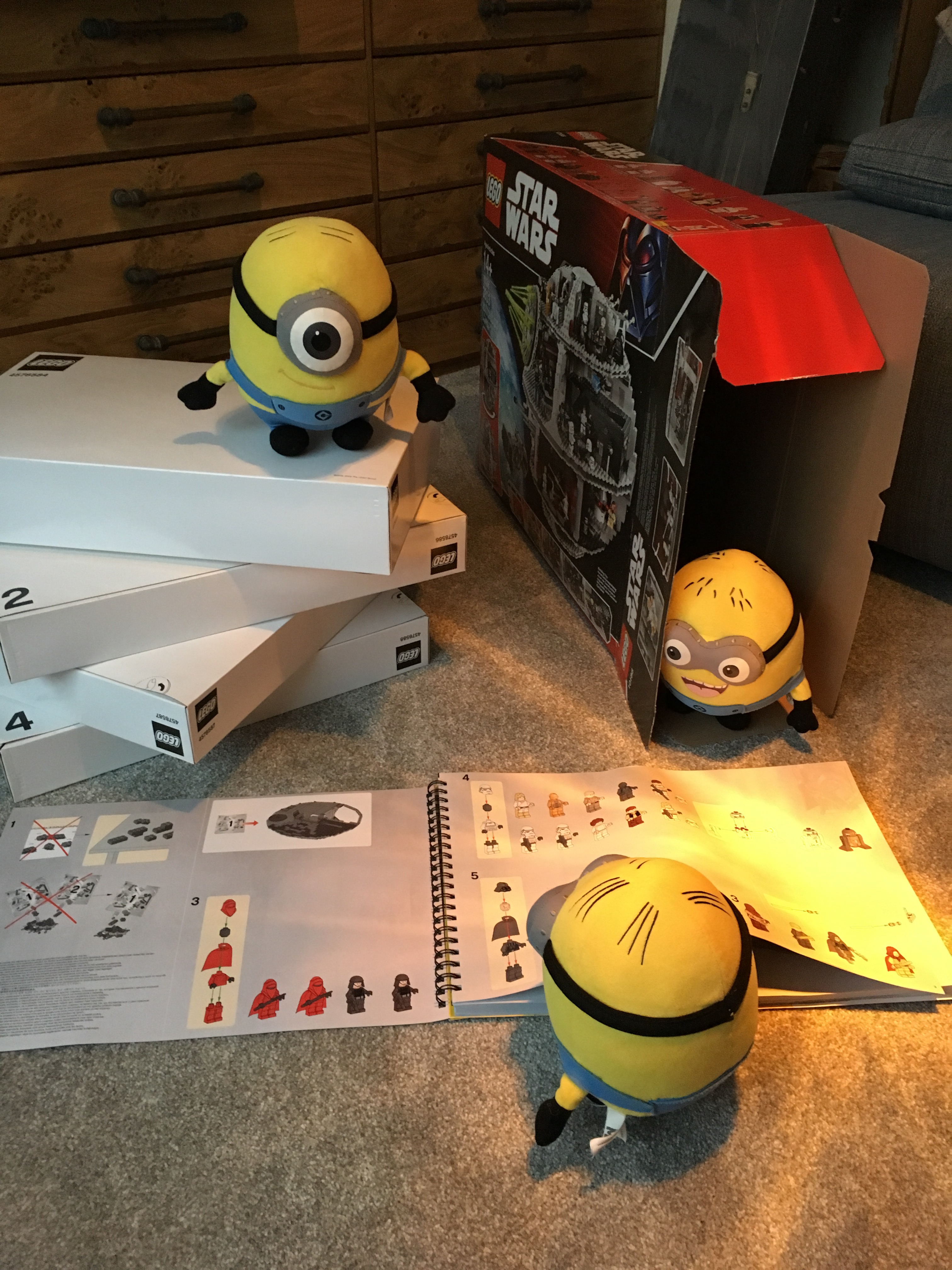 Rebel Minions managed to steal secret plans to the Empire’s ultimate weapon December 31, 2016 ~ techdir96 The Death Star Stuart and Jorge sort out the boxes within boxes whilst Dave consults the instructions. Here come the bricks! It’s got dark outside and The Boys are only halfway through the first box; this might take longer than expected. Share this: Share on X (Opens in new window) X Share on Facebook (Opens in new window) Facebook Like Loading... Related