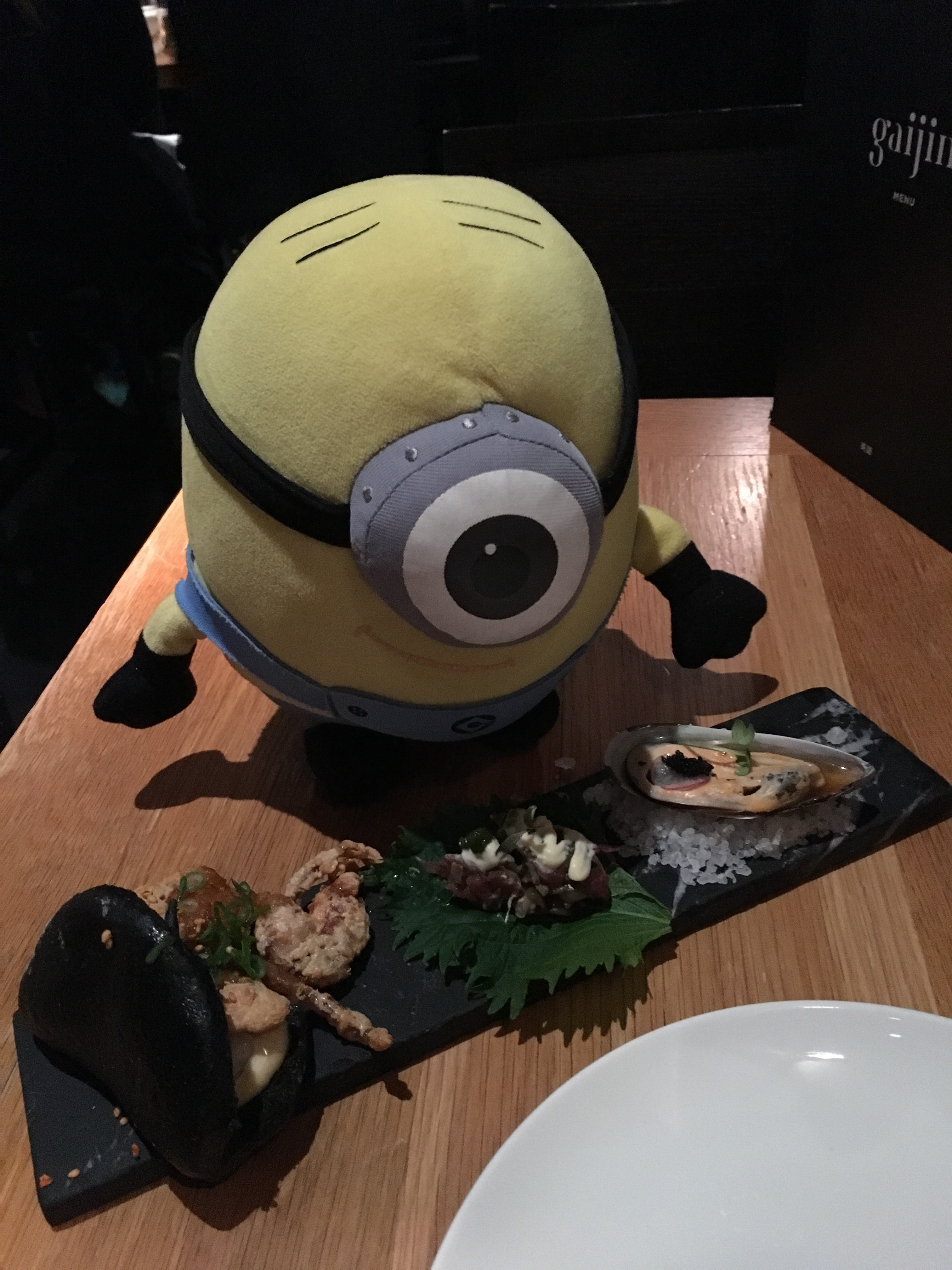 Soft shell crab bun, Japanese steak tartare and green shell mussels in yuzu dressing.